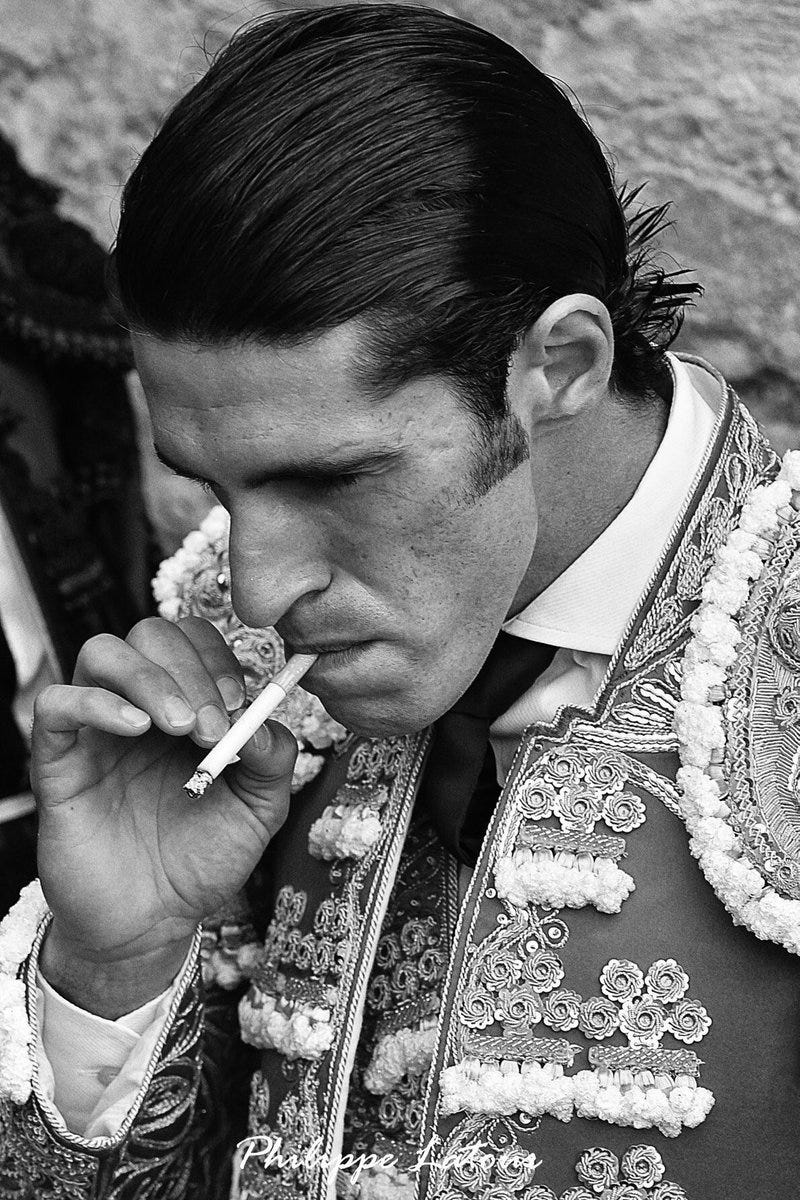 It is here, reader, that I must admit the truth, which is that when I go to a corrida, what I want to see is a man’s body in peak physical condition, performing a feat that harkens back to one of the most primal roles a man must fulfill in nature—dominating a dangerous animal. It’s embarrassing to admit—but it’s true. I am learning to confront my shame. Bullfighting is an art, not a sport, and that art concerns stoic values of confronting death with acceptance and bravery.